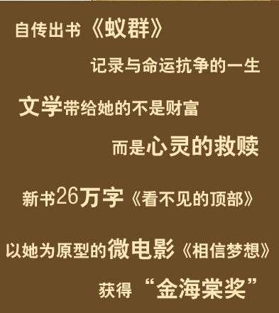 面對生活的苦難,女人沒有逃避,她在寫作中獲得重生今年3月,她的18萬字自傳小說《群》出版,主人公的頑強征服了萬千讀者的心,“蔥油霑大姐”的名字不脛而走。 。