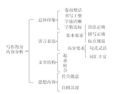 在研究了《大綱》對四級考寫作(ch見ng)分的要求和評分A准之后,我們總鶪F一些大家(ch見n)在寫作時R渧考慮到的因素,如下圖所示:
