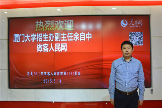 人民網(wǎng)北京5月18日電(記者林露 實(shí)習(xí)生張安)不同於目前國內(nèi)高校普遍實(shí)行的兩學(xué)期制,廈門大學(xué)推行的是三學(xué)期制。近日,廈門大學(xué)招生辦副主任於自中在做客人民網(wǎng)2015招辦主任訪談時(shí),介紹了廈門大學(xué)特色的三學(xué)期制和本科生導(dǎo)師制。