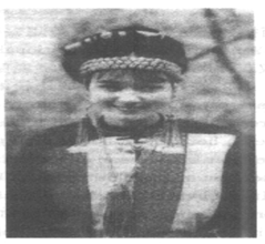 The picture vividly depicts a lovely American girl in traditional Chinese costume with a sweet smile on her face. She wears ribbons, necklaces and other accessories that are characteristic of the clothes of a certain Chinese minority group.