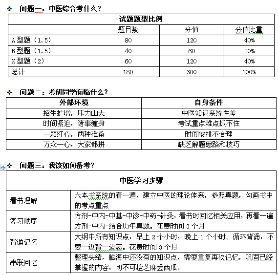 但考研中醫(yī)綜合是比較復(fù)雜的,很多同學(xué)在報(bào)考之前是比較迷茫的,為了消除大家的疑慮,下面為大家整理了若干表格,讓考研中醫(yī)綜合一目了然。