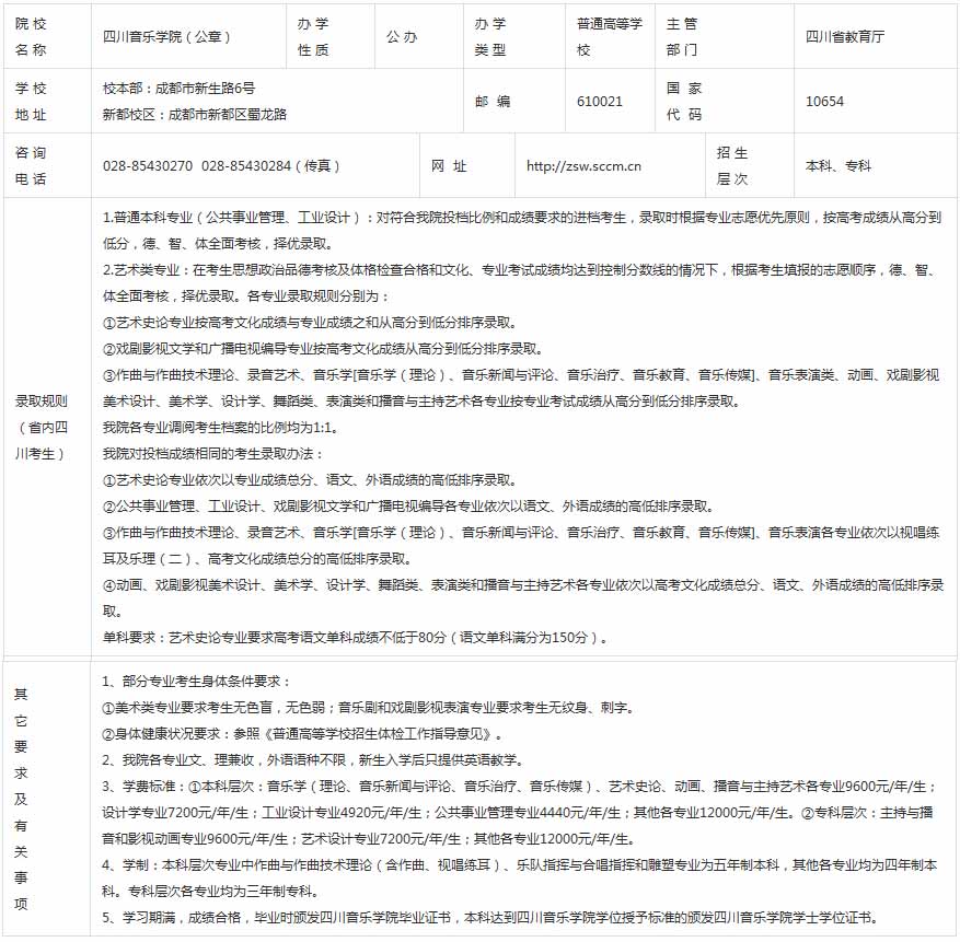 四川音樂學(xué)院2015年招生章程(省內(nèi))
