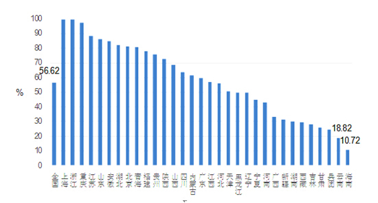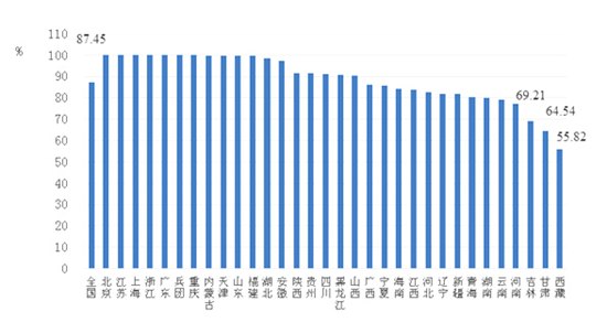 圖1 2016年全國各省接入互聯(lián)網(wǎng)的中小學(xué)比例情況