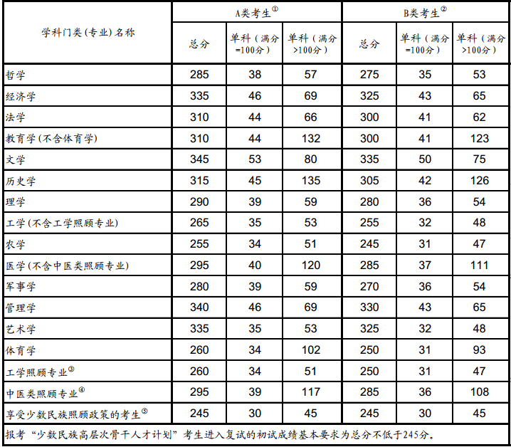 2017年全國(guó)碩士研究生招考考生進(jìn)入復(fù)試的初試成績(jī)基本要求(學(xué)術(shù)學(xué)位類)