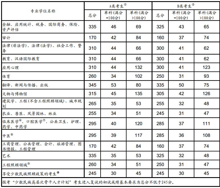 2017年全國(guó)碩士研究生招考考生進(jìn)入復(fù)試的初試成績(jī)基本要求(專業(yè)學(xué)位類)