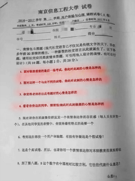 各種以“迷之微笑”“大聲告訴我服不服”“我就知道這不是一場(chǎng)簡(jiǎn)單的考試”,甚至校訓(xùn)“明德格物、立己達(dá)人”為主題的表情包都成為了考試答案。