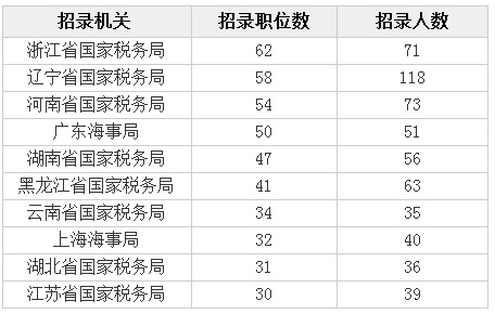 無人報考職位最多十大部門國稅佔據(jù)八席