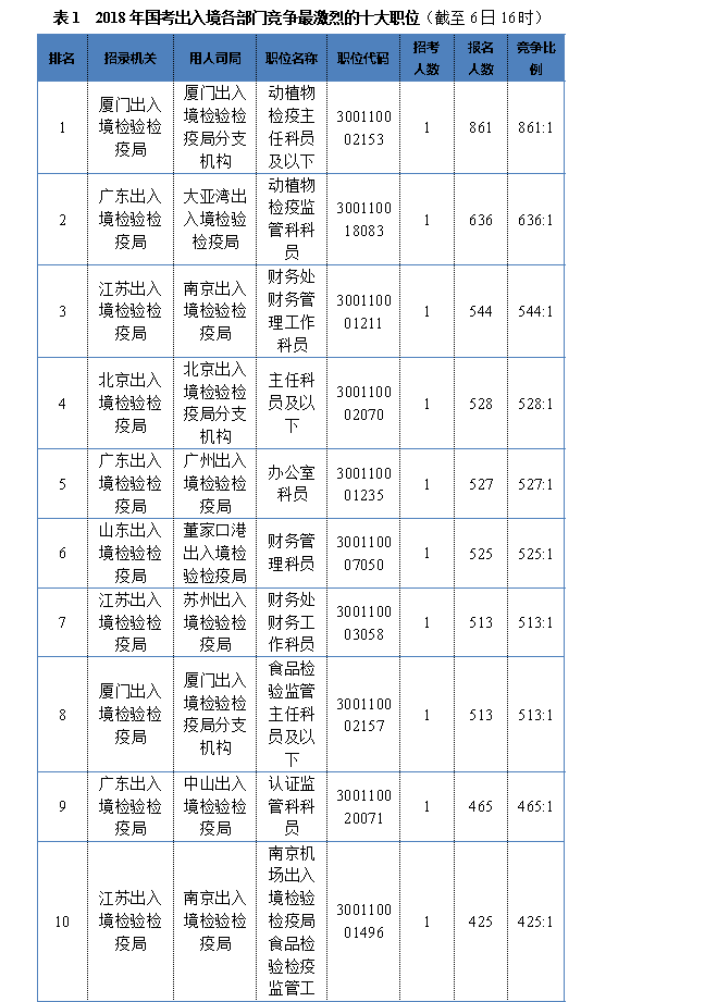 出入境最熱職位競(jìng)爭(zhēng)比例達(dá)861:1