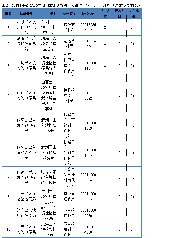 2018國(guó)考出入境各部門(mén)暫無(wú)人報(bào)考十大職位