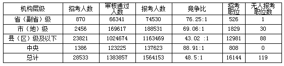 中央黨群百裡挑一,中央國家行政機(jī)關(guān)直屬機(jī)構(gòu)低於平均競爭比