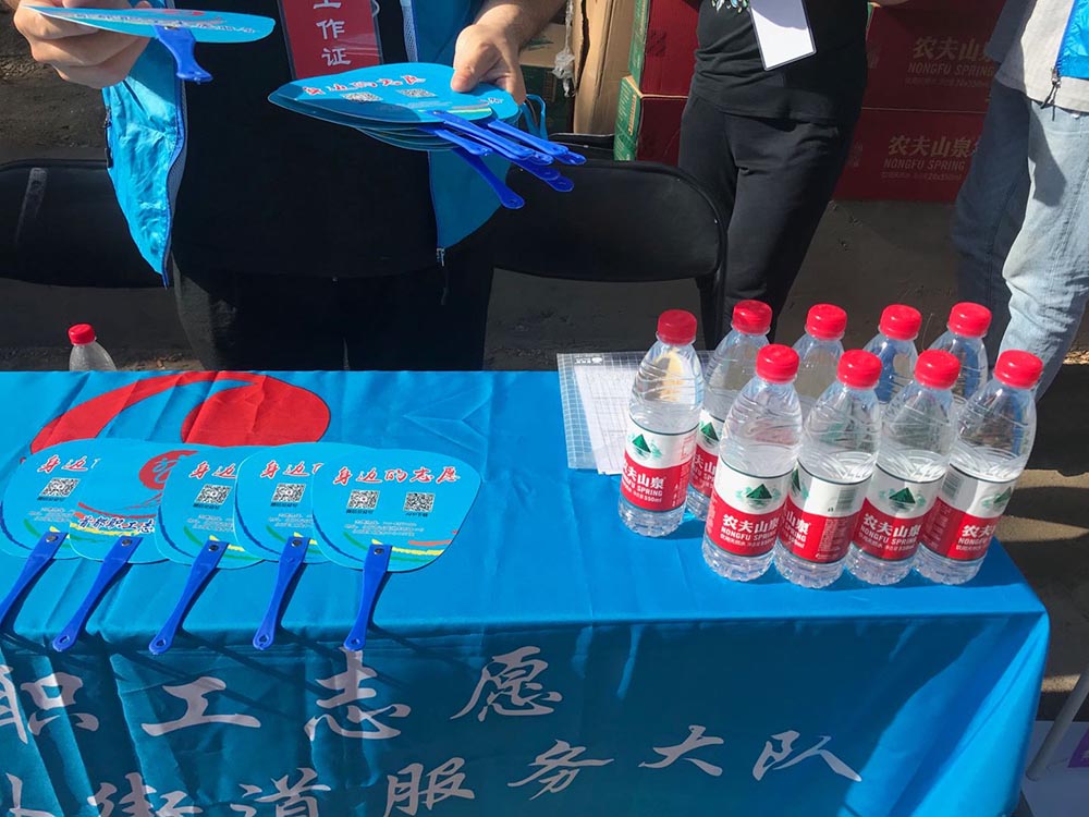 志願服務(wù)人民準(zhǔn)備的水和扇子 劉丹攝