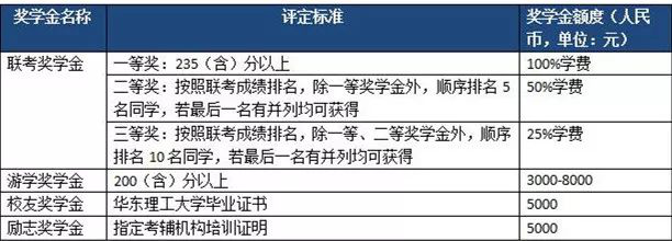 3. 校友獎學金:考生在規(guī)定時間段提出申請並提供華東理工大學畢業(yè)証書后評定﹔