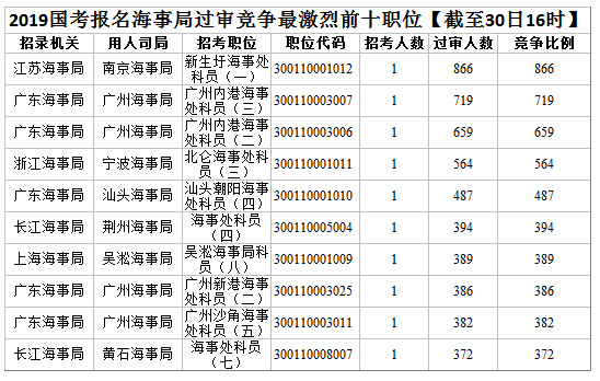 2019國考報(bào)名 海事局競爭最激烈前十職位