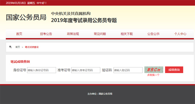 人民網(wǎng)北京1月18日電 (記者 郝孟佳)今天,記者從國家公務(wù)員局網(wǎng)站獲悉,2019年度國家公務(wù)員考試筆試成績和分?jǐn)?shù)線已經(jīng)公布,考生可在國家公務(wù)員局網(wǎng)站查詢。