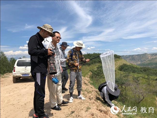 在剛剛結(jié)束的青??疾熘?,師生5人帶著GPS、望遠(yuǎn)鏡、紅外照相機(jī)等設(shè)備,在野外捕捉昆蟲、採摘植物標(biāo)本、觀測鳥類,對當(dāng)?shù)氐纳锒鄻有赃M(jìn)行調(diào)查。1輛車、5個人、人均負(fù)重最多的時候達(dá)到30斤。他們的調(diào)查區(qū)域有些地勢險峻、道路崎嶇,車上不去就隻能徒手爬。幾年下來,跟著他的學(xué)生們都練就了一身“翻山越嶺”的好本事。
