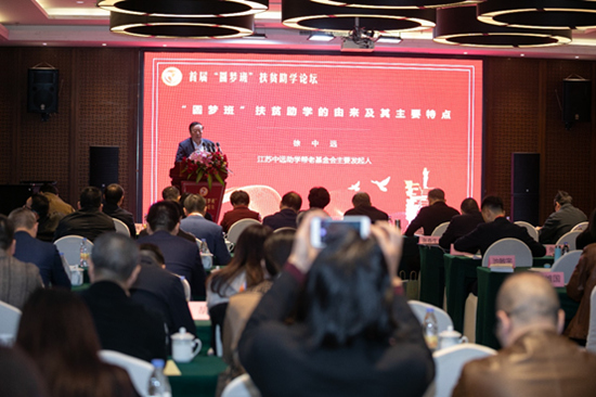 首屆“圓夢(mèng)班”扶貧助學(xué)論壇現(xiàn)場(chǎng),江蘇中遠(yuǎn)助學(xué)幫老基金會(huì)發(fā)起人徐中遠(yuǎn)作主題演講。