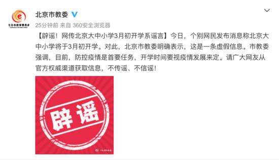 北京市教委:網(wǎng)傳北京大中小學(xué)3月初開學(xué)消息不實(shí)