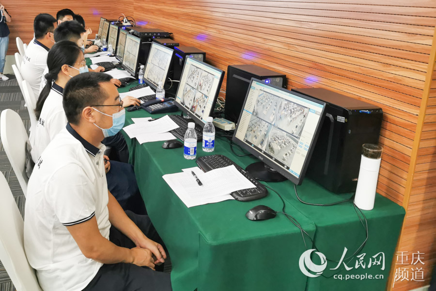 記者在重慶市國家教育考試考務(wù)指揮中心看到,工作人員正在通過實時監(jiān)控監(jiān)測考場內(nèi)情況。今年高考期間,重慶市開展網(wǎng)上巡查,選派專門人員通過市級國家教育考試考務(wù)指揮平臺及電子監(jiān)控系統(tǒng),對全市各考點保密室、考場考風(fēng)考紀(jì)進(jìn)行實時監(jiān)控、全程錄像。