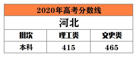 河北 本科最低錄取控制線:理工類415分,文史類465分。