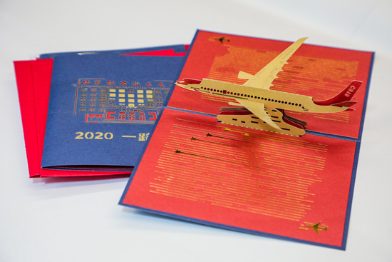 新生專屬中陽剪紙,由中陽人純手工雕刻而成,鏤空的紙雕飛機代表著對新一代北航人翱翔九天的希冀。(學(xué)校供圖)