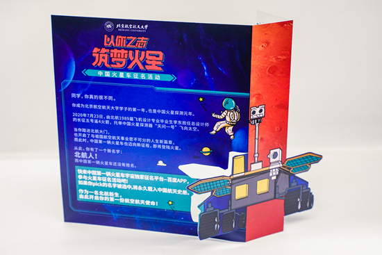 郵寄禮包內(nèi)的“以你之志,筑夢火星”的火星車征名邀請函(學(xué)校供圖)