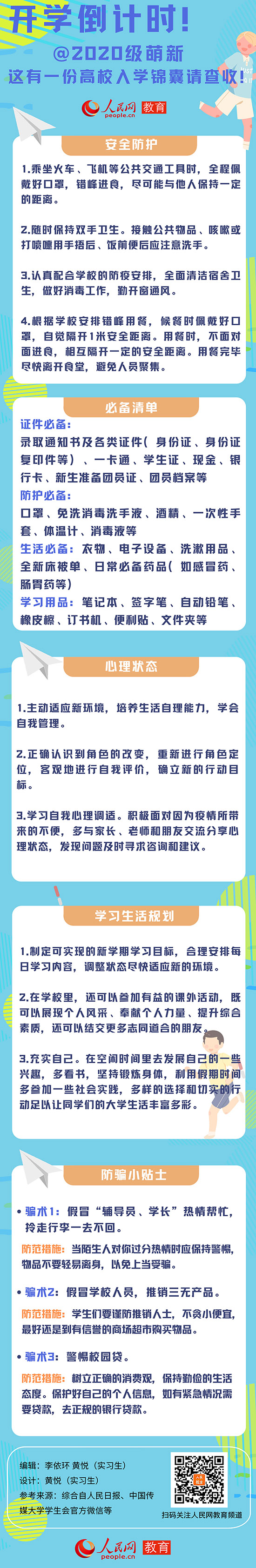 人民網(wǎng)北京8月19日電(李依環(huán) 實習(xí)生黃悅)當前,全國多地高校已經(jīng)陸續(xù)公布秋季開學(xué)時間,大學(xué)校園即將迎來“萌新”報到。人民網(wǎng)教育頻道特別梳理了一份入學(xué)錦囊,請即將步入新階段的學(xué)子們查收,元氣滿滿開啟大學(xué)校園生活。