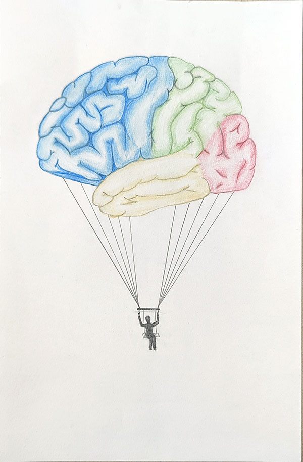 作者吳曉娜解讀:大腦是人體非常重要的器官,人的思維活動,學(xué)習(xí)和記憶都是在大腦進行的。近些年來,因為各種各樣的原因,人們無論是在學(xué)習(xí)還是在工作中都存在一定的思維定勢,本作品將熱氣球用大腦來代替,希望人們都能自由的思考,擺脫既有的思維定勢。