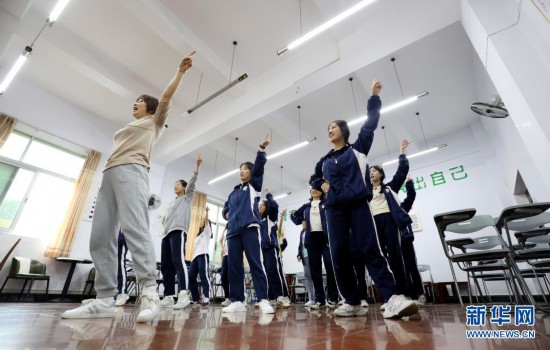 5月18日,湖南省資興市立中學(xué)的高三學(xué)生在跳舞減壓。