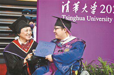 本報訊 昨天上午,清華大學在東大操場舉行2021年本科生畢業(yè)典禮。畢業(yè)生魏祥坐在輪椅上,由校黨委書記陳旭撥穗,圓滿完成了在清華的本科學業(yè)。4年前,殘疾新生魏祥因為向清華寫信求“一間陋宿供母子倆濟身”,並獲得清華招辦公開回信而感動了萬千網(wǎng)友。如今他本科順利畢業(yè),並獲得直接攻讀博士學位的資格,將回到家鄉(xiāng)甘肅繼續(xù)攻讀博士學位。