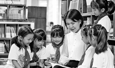 遼寧沈陽市渾南區(qū)第九小學(xué)教師陳秋穎在陪伴學(xué)生閱讀。新華社發(fā)