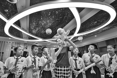 河北邯鄲市邯山區(qū)實驗小學(xué)的老師給學(xué)生講解航空航天知識。李昊攝/光明圖片