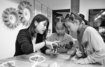 陝西西安市新城區(qū)后宰門小學(xué)的老師在指導(dǎo)航模興趣小組的學(xué)生。新華社發(fā)
