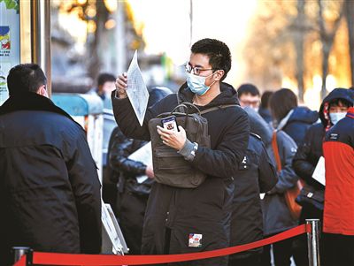 昨日,寒風(fēng)呼嘯。不到8點,北京電氣工程學(xué)院的門外就已經(jīng)有考生在等候。北京青年報記者看到,工作人員不停地喊話考生出示健康寶以及核酸檢測陰性報告,還緊盯著核酸報告的時間。據(jù)了解,本次考次考生必須帶齊準(zhǔn)考証、本人有效居民身份証原件,經(jīng)現(xiàn)場測量體溫正常、北京健康寶為“未見異常”且持本人首場考試前48小時內(nèi)採樣的核酸檢測陰性報告,方可進(jìn)入考點。核酸檢測報告須為全國范圍內(nèi)具有新冠肺炎病毒檢測資質(zhì)的機構(gòu)出具的紙質(zhì)或電子報告,提供的報告上須準(zhǔn)確顯示採樣時間,要精確到小時。