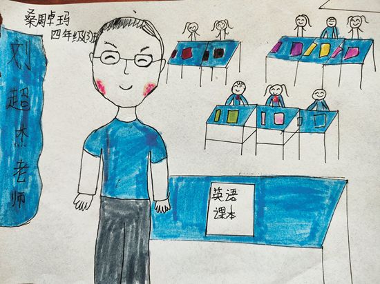 青海小朋友桑周卓瑪為浙江海洋大學“山海情,海山夢,攜愛向西行”支教隊帶隊老師劉超杰畫的漫畫。實踐團隊供圖