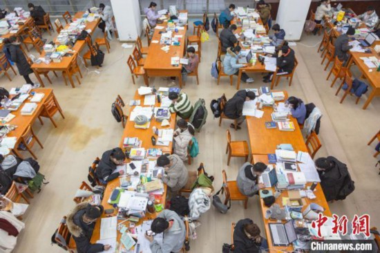 資料圖:南昌大學(xué)圖書館自習(xí)室內(nèi),考生正在緊張復(fù)習(xí)?!⒘?攝