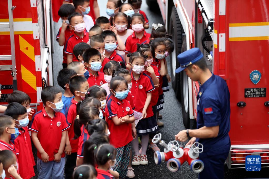 “六一”兒童節(jié)臨近,湖南省資興市消防救援大隊(duì)舉辦開放日活動(dòng),資興市小紅花幼兒園30余名小朋友走進(jìn)消防站,參觀了解消防裝備,學(xué)習(xí)消防知識(shí),增強(qiáng)安全意識(shí)。新華社發(fā)(李科攝)