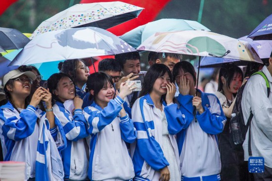 6月9日,貴陽市烏當(dāng)中學(xué)高三學(xué)生在雨中參加畢業(yè)典禮。