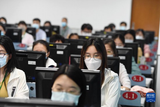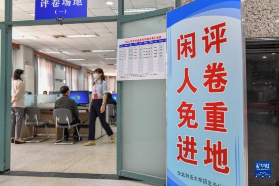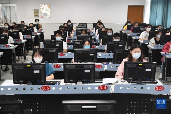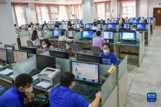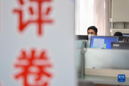 6月14日,在位於吉林長春的東北師范大學(xué)高考網(wǎng)上評卷點(diǎn),工作人員在評卷。據(jù)了解,2022年吉林省高考評卷工作全部採用電子掃描、網(wǎng)上評卷方式進(jìn)行。新華社記者 張楠 攝