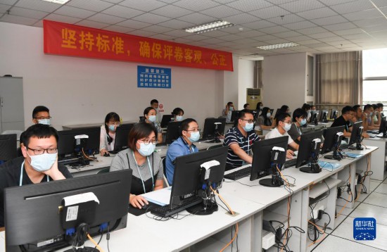 6月14日,在位於吉林長春的東北師范大學(xué)高考網(wǎng)上評卷點(diǎn),工作人員在評卷。新華社記者 張楠 攝