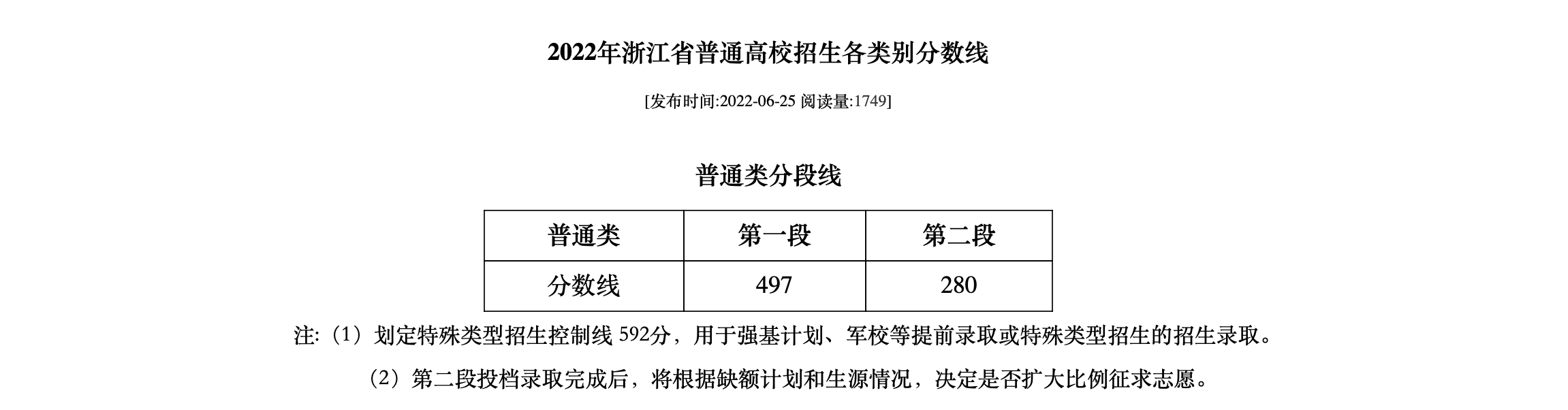 2022浙江高考分?jǐn)?shù)線發(fā)布:普通類第一段497分