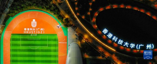 這是香港科技大學(xué)(廣州)體育館和體育場夜景(8月15日攝,無人機(jī)照片)。