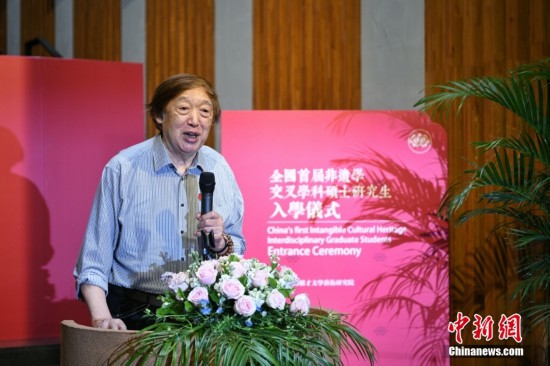 9月27日,中國首屆非物質(zhì)文化遺產(chǎn)學(xué)交叉學(xué)科碩士研究生入學(xué)儀式在天津大學(xué)馮驥才文學(xué)藝術(shù)研究院舉行。圖為院長馮驥才在新生入學(xué)儀式上致辭。 中新社記者 佟郁 攝