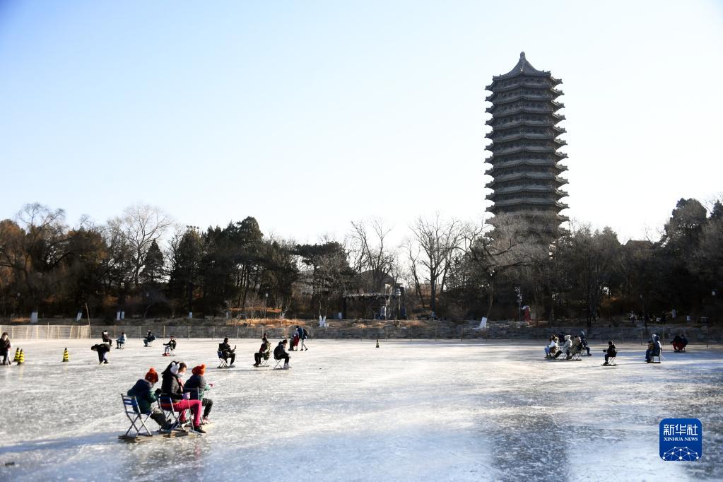 2022年最后一天,在北京大學(xué)未名湖冰場,人們滑冰、玩冰車,在感受冰上運(yùn)動(dòng)的魅力中喜迎新年。