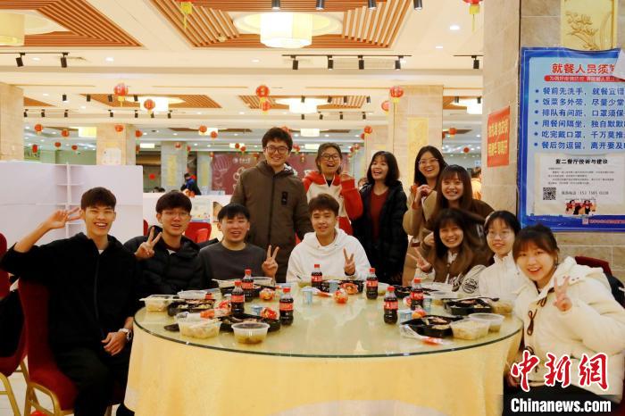 除夕夜,華僑大學(xué)境內(nèi)外留校學(xué)生領(lǐng)取學(xué)校免費(fèi)提供的年夜飯?zhí)撞汀!墙x 攝