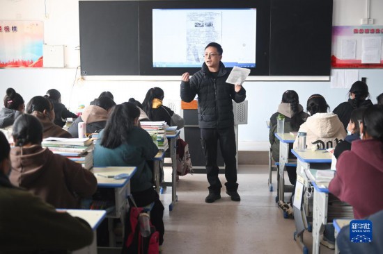 2月23日,上海援青教師鐘祖華在給學(xué)生上課。