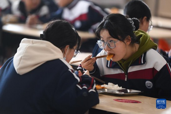 2月23日,西寧果洛中學(xué)學(xué)生在食堂吃午飯。