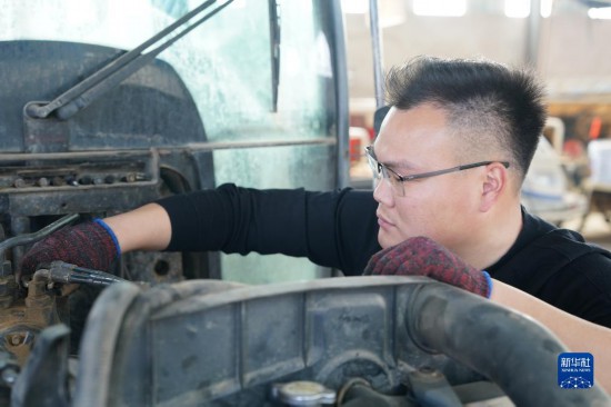 2月28日,王昌在來(lái)安縣水口鎮(zhèn)擁巷村對(duì)農(nóng)業(yè)機(jī)械進(jìn)行春耕前的檢修。
