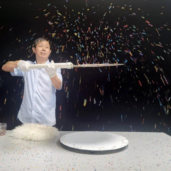 鏡頭前,62歲的唐守平手舉一截塑料管,一束塑料絲在他的“驅(qū)趕”下飄浮起來,如同一隻揮動觸手的章魚在空中游走。