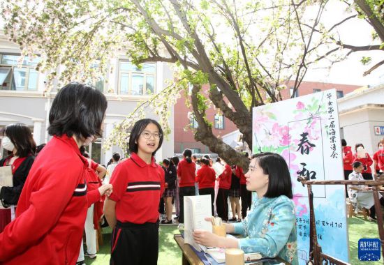 當日,北師大實驗華夏女子中學舉辦以“春和”為主題的第二屆“海棠詩會”。師生們選取有關“春天”“和煦”“生機”“美好”的詩歌,在校園的海棠樹下賞析吟誦,共享詩歌之美,傳承中華優(yōu)秀傳統(tǒng)文化。