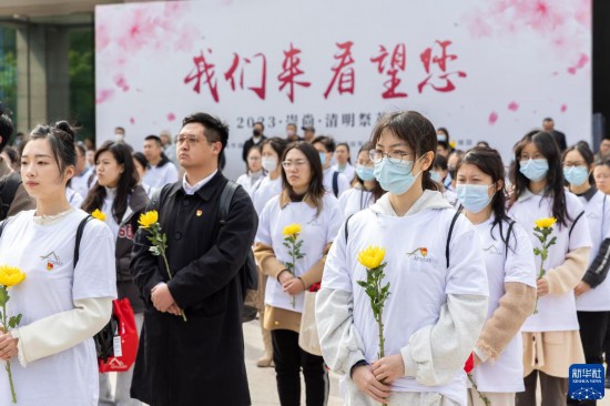 當日是清明節(jié),人們前往各地烈士陵園,向英烈敬獻鮮花,寄托哀思。